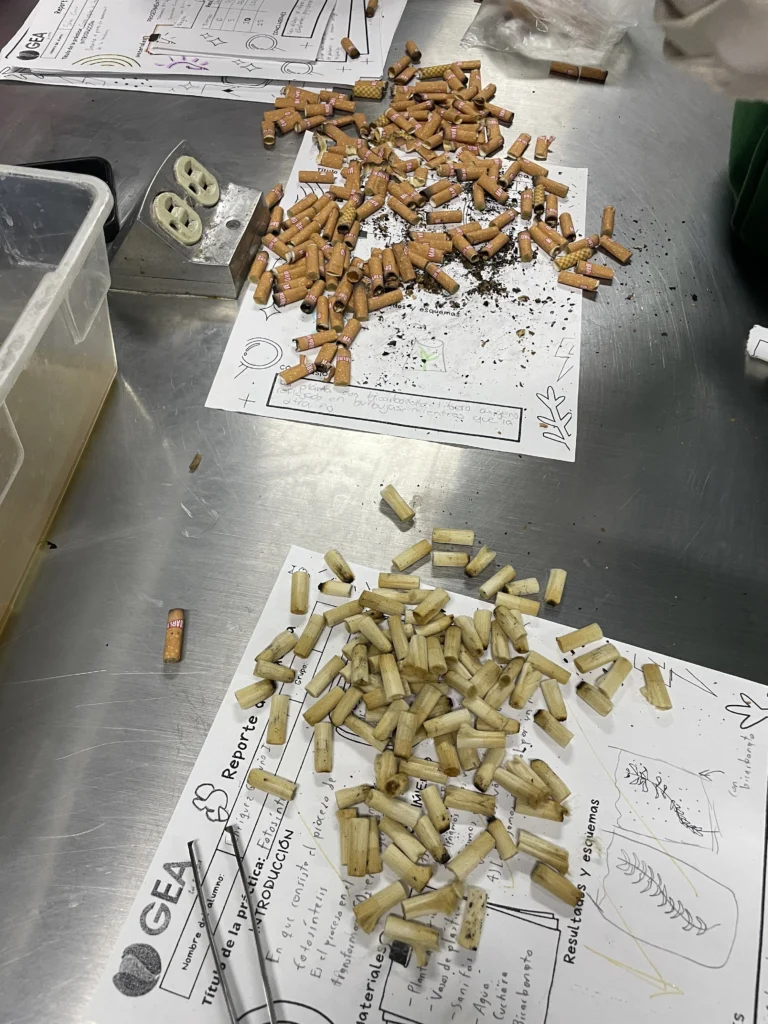 Posteriormente se limpiaron las colillas, se separó el papel del acetato de celulosa, se cortó la parte más quemada para dejarlas lo más limpias posibles.