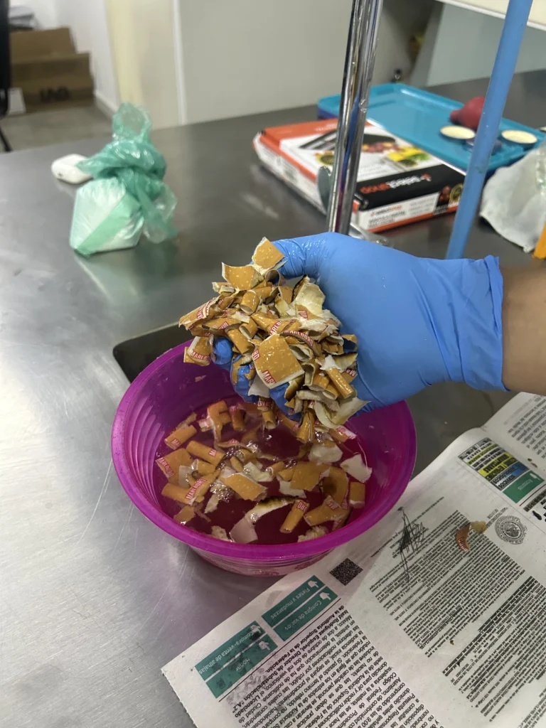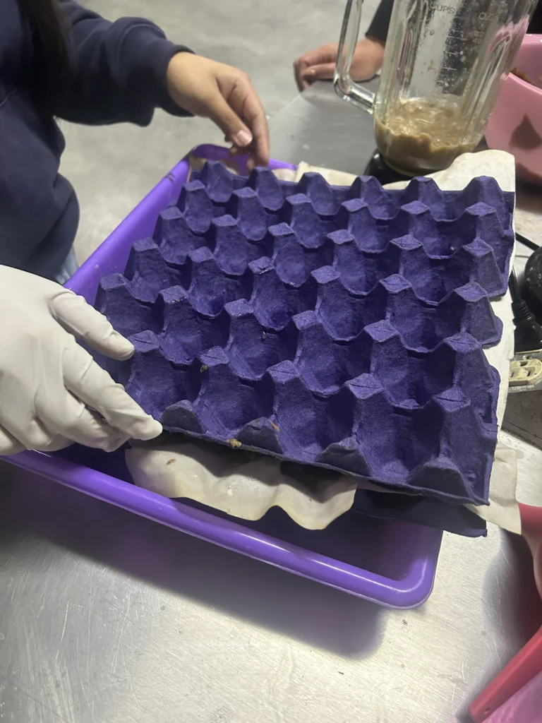 Para la elaboración del cartón de huevo se realiza el mismo procedimiento, únicamente se utiliza un molde para darle la forma deseada.