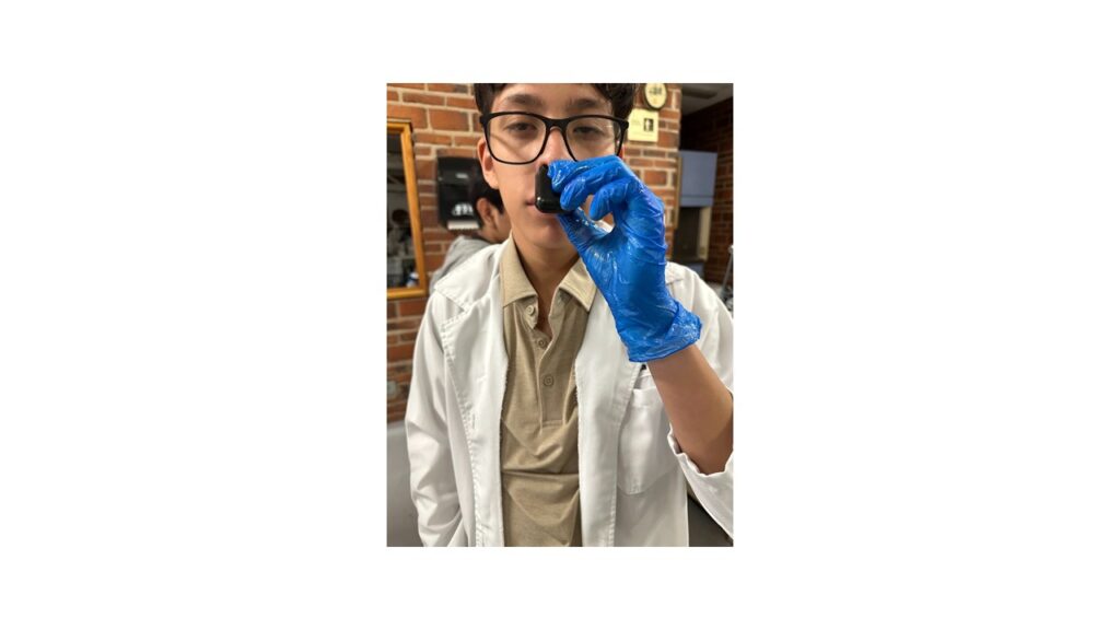 11- probamos el inhalador poniéndolo debajo de la nariz para comprar si las respectiva mezcla si funciona y si funcionó