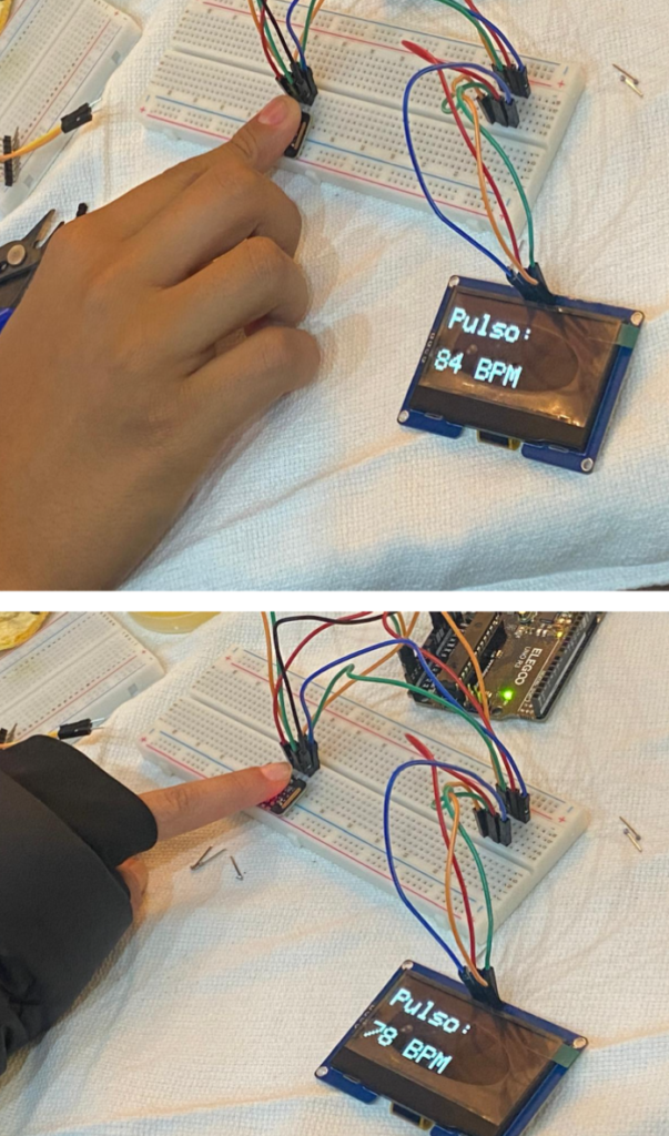 El presente proyecto tuvo como objetivo desarrollar un dispositivo capaz de medir la frecuencia cardiaca utilizando un sensor óptico conectado a una placa Arduino y una pantalla OLED. El sistema funciona detectando las variaciones en la absorción de luz causadas por el flujo sanguíneo en cada latido, las cuales son convertidas en señales digitales que el microcontrolador procesa para calcular las pulsaciones por minuto (BPM).