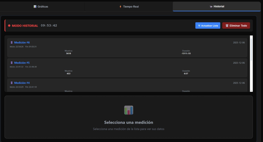 Se llevaron a cabo pruebas unitarias y de integración para validar el ecosistema de software. En el Backend, se verificó la correcta recepción, procesamiento y almacenamiento de las tramas de datos enviadas por la ESP32 en la base de datos. En el Frontend, se validó la integridad de la interfaz de usuario, asegurando una visualización fluida de las gráficas y una respuesta inmediata a los eventos de telemetría.