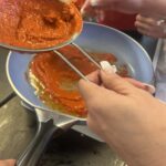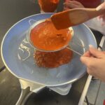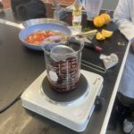 Los concentrados son una opción práctica, rápida y accesible para la elaboración de alimentos, ya que permiten agilizar procesos sin sacrificar sabor. En este proyecto, se eligió el chile guajillo como ingrediente principal debido a su amplia utilización en la cocina mexicana, siendo un componente esencial en muchos platillos tradicionales. Este chile es conocido por su sabor suave, ligeramente dulce y su color rojo característico, lo que lo hace ideal para dar profundidad y matices a salsas, guisos y marinados. Además del chile guajillo, se incorporaron otros ingredientes y condimentos fundamentales para equilibrar los sabores del concentrado. Entre ellos se encuentran la sal, el jitomate, el ajo y la cebolla, que aportan frescura y un toque de umami al producto final. El proceso de elaboración comenzó con la mezcla de estos ingredientes, lo que dio como resultado una pasta rojiza y de consistencia poco espesa. Para lograr una forma práctica y fácil de usar, se utilizó pectina diluida en jugo de naranja, lo que permitió transformar la pasta en esferas semisólidas. Estas esferas, al entrar en contacto con agua hirviendo, se disuelven de manera eficiente, liberando todo el sabor del concentrado en el líquido. De esta manera, el concentrado se convierte en una opción conveniente para quienes buscan un sabor auténtico y delicioso en poco tiempo, sin complicarse con procesos largos de preparación.