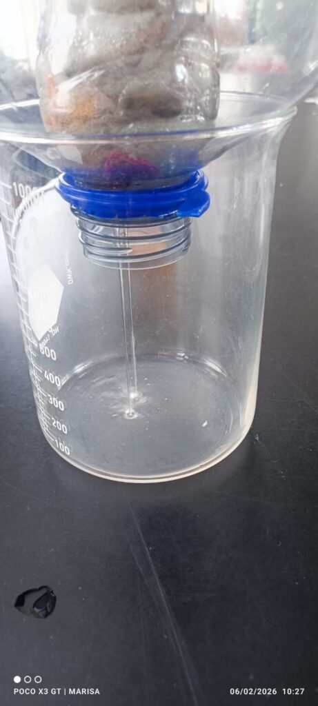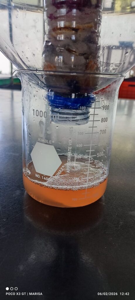 Finalmente volvimos a realizar las mismas dos pruebas pero está vez deshidratamos los materiales al sol y utilizando una mayor cantidad al pasar el agua por el filtro notamos que disminuyó la cantidad de agua y ya no habían rastros de comidas y espuma, sin embargo siguió teniendo la misma coloración a un tono durazno, lo cual no es un problema ya que es parte de pigmentación natural de la naranja y la bugambilia