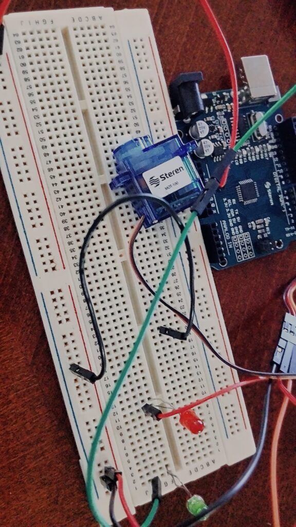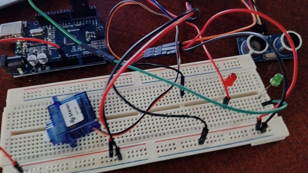 Cuando se combinan Arduino, un servomotor y un sensor ultrasónico, es posible crear proyectos más completos e interesantes. Por ejemplo, un sistema puede detectar la presencia de un objeto con el sensor ultrasónico y, según la distancia medida, activar el servomotor para abrir una tapa, mover una barrera o accionar un mecanismo. Arduino actúa como el cerebro del sistema, procesando la información del sensor y controlando el movimiento del servomotor.