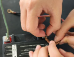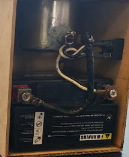 4: Coloca la batería de moto en el cajón después conecta con cables la batería de moto en sus respectivos polos el polo positivo con positivo negativo con negativo (cuidado no conectar los 2 en los polos opuestos si no echarás a perder la batería). (Precaución no conectar ambos a la vez).