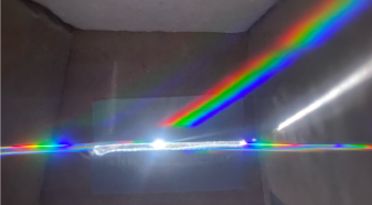 Decidimos usar una rejilla de difracción en lugar de una simple CD. Mientras que un prisma dobla la luz por refracción, la rejilla de difracción utiliza un fenómeno llamado interferencia.