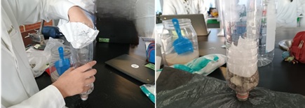 5.2 Se cortó la base de la botella para permitir la introducción de los materiales filtrantes.