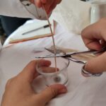 3.Verter en los frascos y a algunos les agregamos 7 gotas de lavanda y 4 de eucalipto, a otras les agregamos 4 gotas de jazmín y 4 de lavanda.