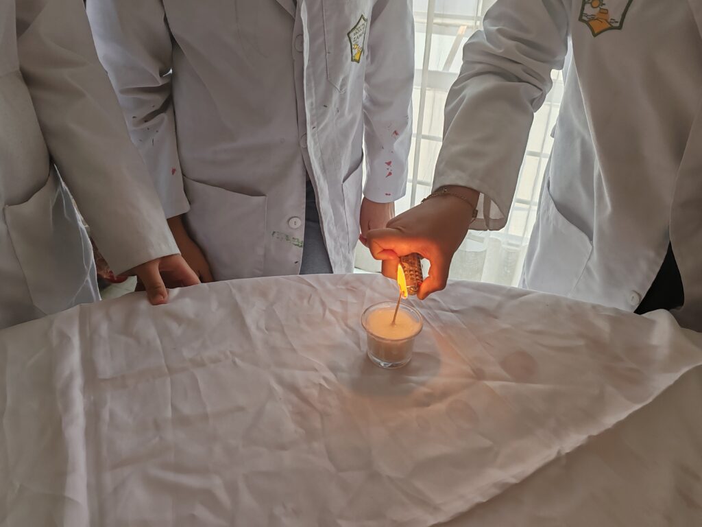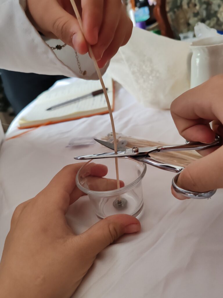 4.Mezclar y acomodar el pabilo en el molde y lo cortamos a la medida.