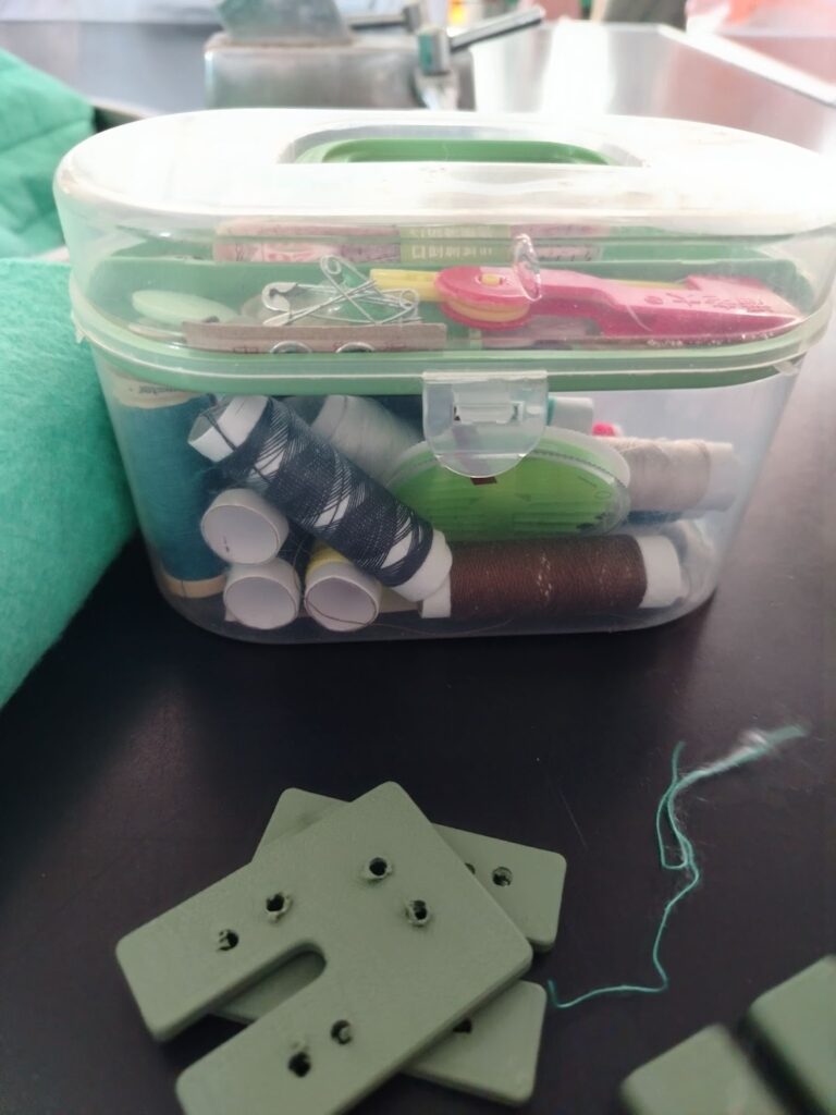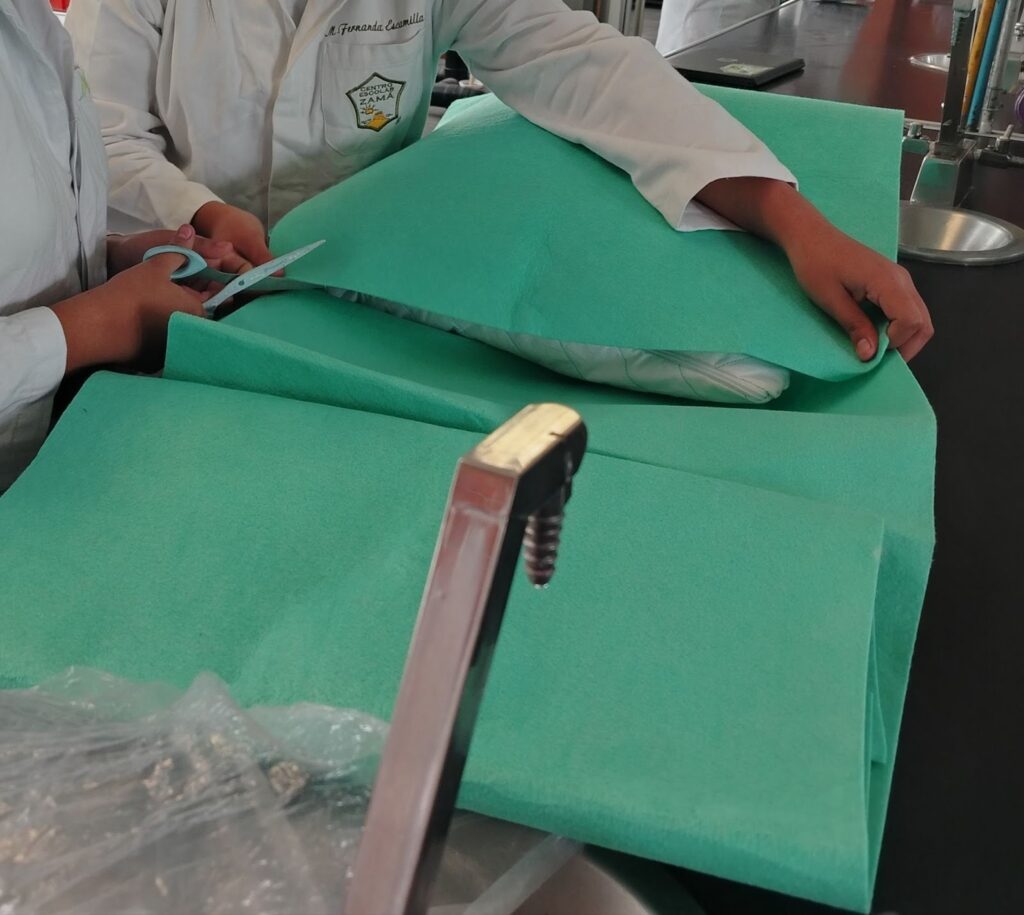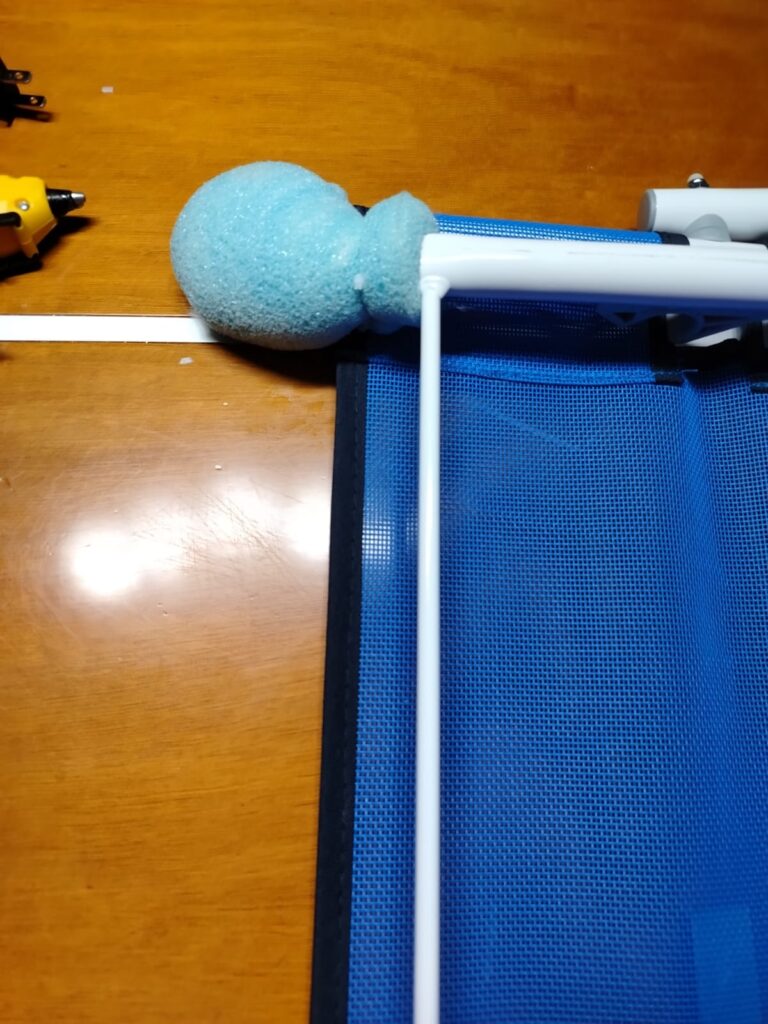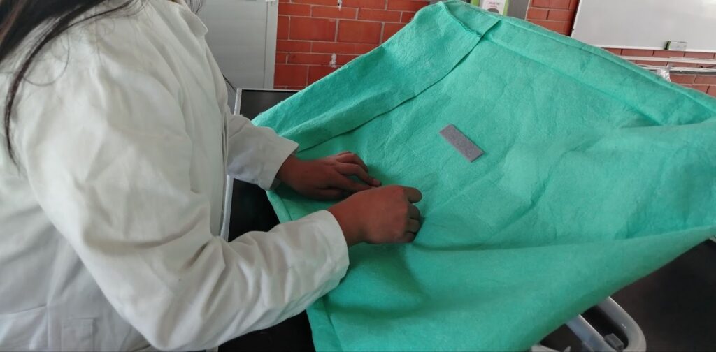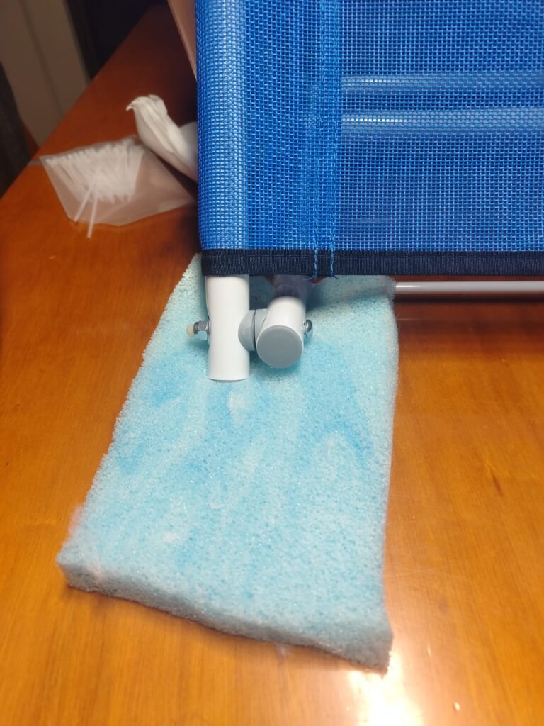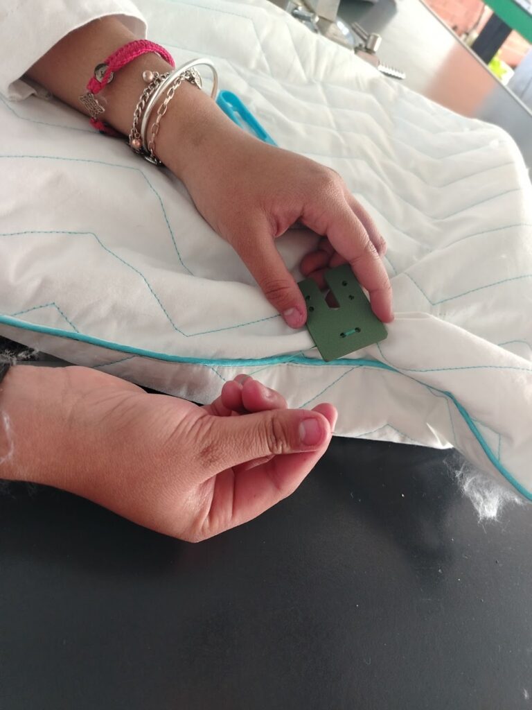 7. Al final, se colocan 3 metros de velcro y 5 tiras en la malla azul y en la funda, con el fin de poder moverlo y acomodarlo según se desee.