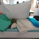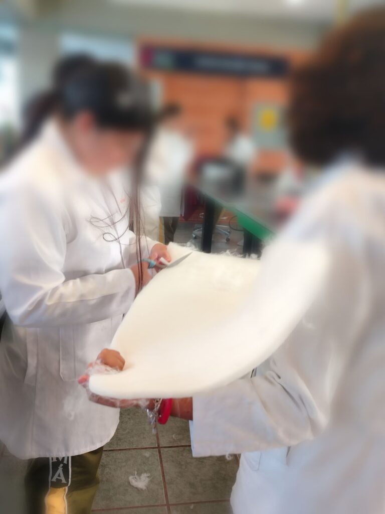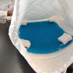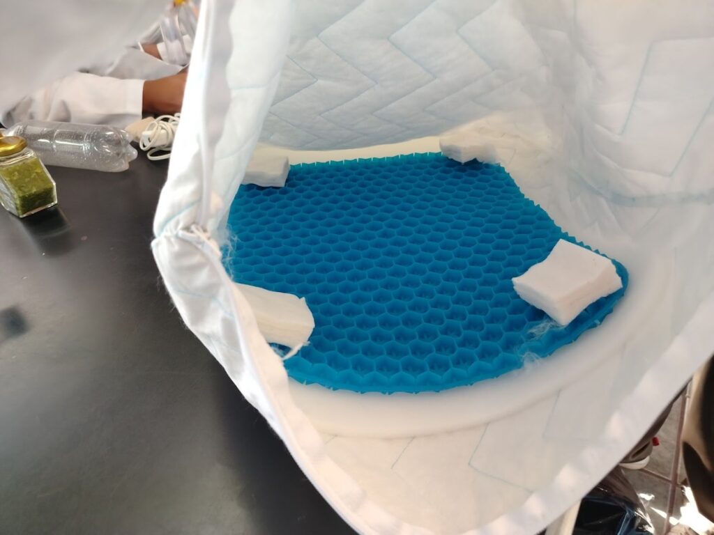 3. Colocar  el tapete de gel viscoelástico dentro de la almohada junto con 40 cm de la espuma viscoelástica, para darle más soporte colocamos los 100 gramos de algodón orgánico.