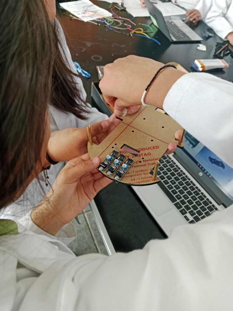 6-Colocar en la parte baja de la segunda base externa de madera los módulos sensores seguidores de línea.