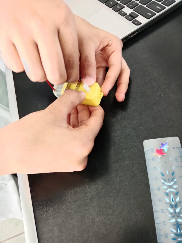 7-Incorporar a las llantas los motores y añadirla a la segunda externa base de manera en la que anteriormente se colocaron los seguidores de línea.