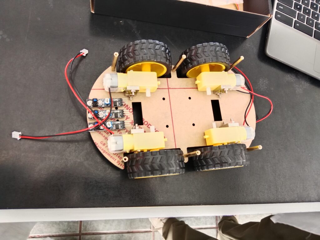 Se obtuvo un robot de 20 centímetros de largo,19 centímetros de alto y 13 de ancho,con dos llantas derechas para motorreductor de 6 cm de diámetro, ensamblado por dos bases externas de madera de modo que la base inferior se encuentra todo el cableado de los motorreductores,incluyendo,los  módulos sensores seguidores de línea y el sensor ultrasónico mientra que en la base superior de madera se encuentra el arduino conectado por medio de los jumper dupont a las demás piezas como los motorreductores, sensores seguidores de línea. En la base superior se encuentra en recubrimiento de la cámara  ESP32  y el servo motor micro de arduino conectado a la Antena externa WiFi de 2.4GHz con conector IPEX. En cuanto a la programación con ayuda de python, avanza a 75 ms con ayuda de los seguimientos de línea.  Con un costo aproximado de $950.