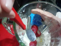 Los ingredientes utilizados fueron: moras, fresas, queso cottage y yogur griego. En ambos procedimientos se licuaron los ingredientes y posteriormente se congelaron. Se obtuvo una consistencia ligeramente cremosa.
