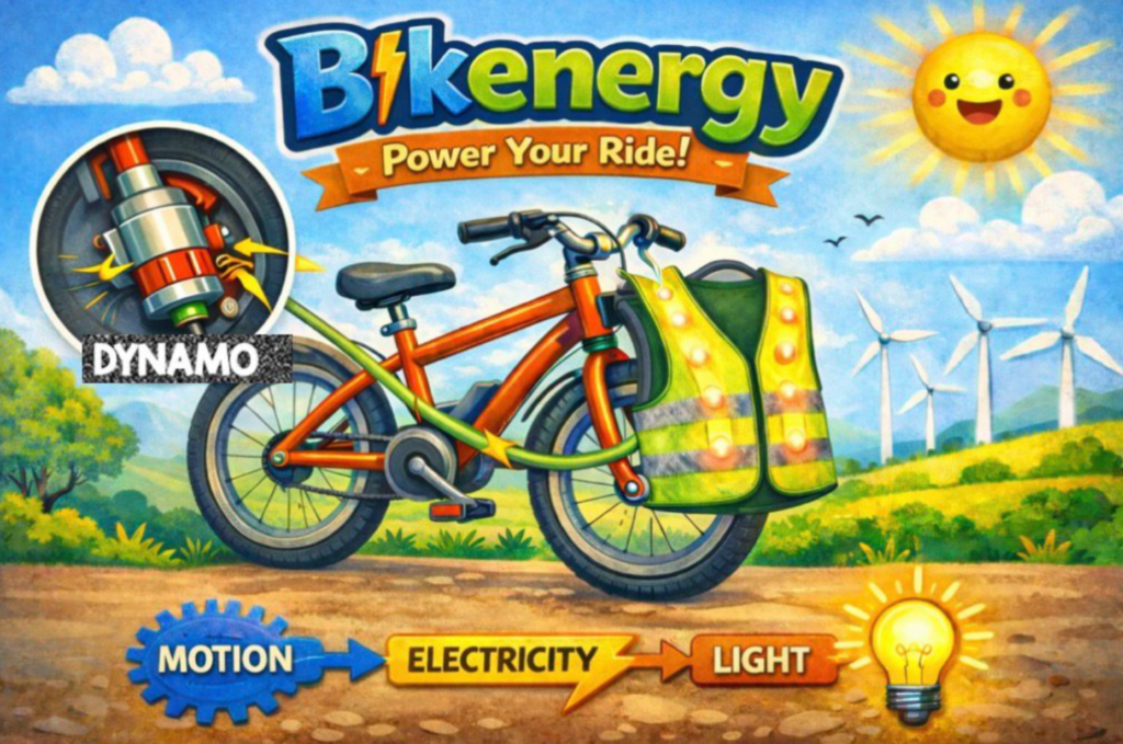 En este proyecto aprendimos cómo podemos hacer electricidad usando una bicicleta con un dinamo. Queríamos comprobar si el movimiento de la rueda puede encender luces sin usar baterías.