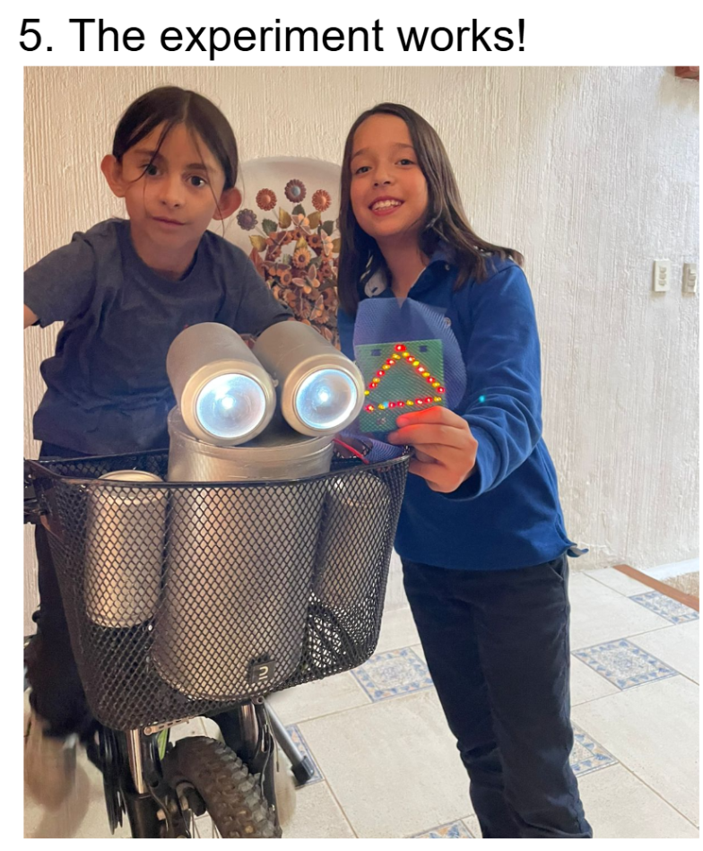 También nos dimos cuenta de que entre más rápido pedaleamos, más electricidad se produce, por eso las luces brillan más.