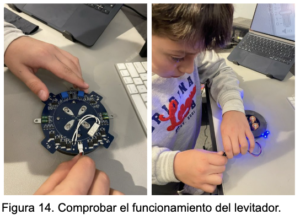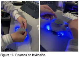 Se observó que los sensores de efecto Hall detectaban la posición del imán y enviaban señales a la placa electrónica, lo que permitía regular la intensidad del campo magnético generado por las bobinas. Gracias a este control, el sistema pudo mantener el imán en equilibrio durante varios segundos.