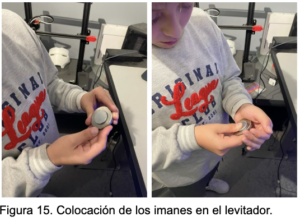 Se realizaron varios intentos para lograr que el imán se mantuviera suspendido sin caerse.