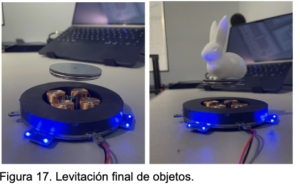 Después de realizar los ajustes, se logró la levitación estable del imán y de algunos objetos pequeños.
