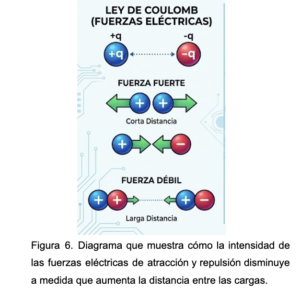La ley de Coulomb establece que existen fuerzas de atracción y repulsión entre cargas eléctricas, y que estas fuerzas dependen de la distancia entre ellas.