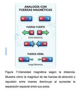De manera similar, la fuerza magnética entre dos polos aumenta cuando están más cerca y disminuye cuando se alejan.