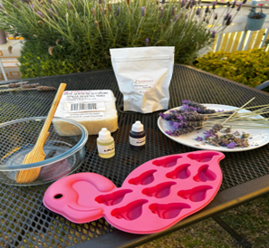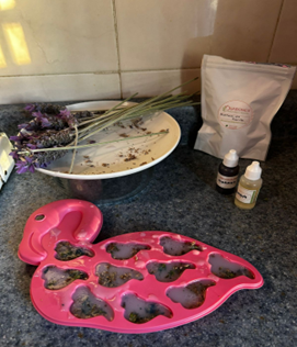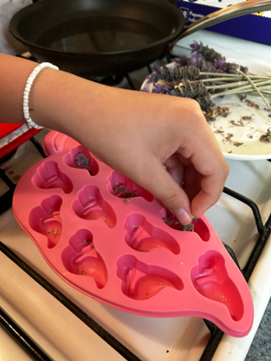 Se elaboraron jabones de lavanda y karité y se probaron con 5 personas.