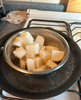 1-Cortar la glicerina en cubitos pequeños.