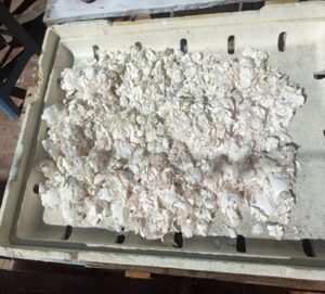 Una vez lista la mezcla, se vierte en los moldes previamente preparados y se deja secar durante aproximadamente dos días. Transcurrido este tiempo, se procede al desmolde.