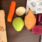 Tiktekih verduras ken papa, camote, zanahoria huan betabel. Tikchihua ika horno o freidora de aire para amo quipias miyac aceite. Ijcon mochihua se tlacualiztli crujiente huan cuali.