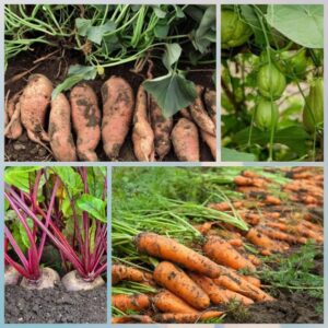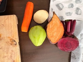Usamos verduras como papa, camote, zanahoria y betabel. Las cocinamos en el horno o en la freidora de aire para no usar mucho aceite. Así obtenemos un alimento crujiente, rico y más saludable.