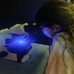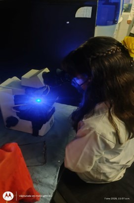 En el primer laboratorio visitado el Químico que nos atendió nos explicó sobre los tipos de bioluminiscencia, como se genera la bioluminiscencia artificialmente para realizar los tratamientos médicos y nos fue posible observar la bioluminiscencia en el microscopio. También nos explicaron cómo se conforma la célula bioluminiscente.