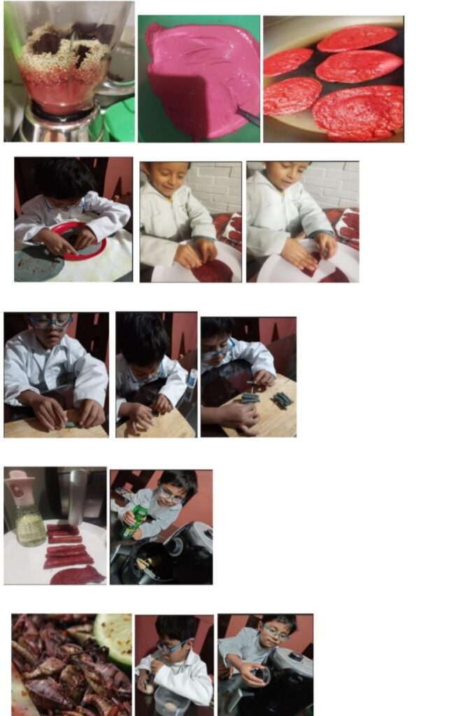 The main objective is to develop tortilla rolls with natural flavoring powder that matches the sensory experience of commercial brands without the harmful effects of synthetic additives. The tortilla base (made from blue corn, nopal cactus, and beet) will be used to achieve vibrant colors without resorting to artificial additives. For flavor, dried grasshopper powder with lime will be used, transforming nutrient-rich ingredients into an innovative product without sacrificing popular taste. This will create a functional snack with high nutritional value, beneficial health trends, and a tasty and visually appealing flavor. It is nutritionally superior to conventional snacks, demonstrating that healthy eating can be fun and delicious.