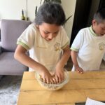 Amasa ligeramente para terminar de unir los ingredientes en una masa, poco pegajosa.