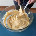 3.- Con ayuda de una cuchara o espátula, se mezclan ambos ingredientes de forma constante y uniforme hasta obtener una mezcla homogénea, de color y textura