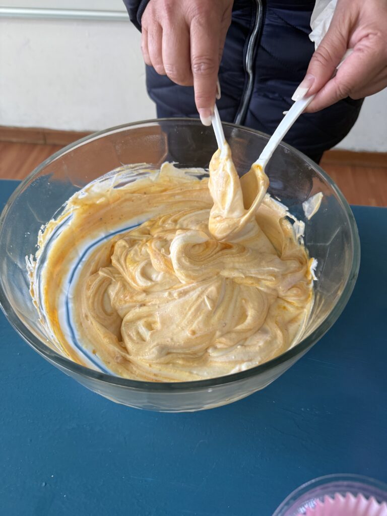 2.- Posteriormente, se agrega la cantidad indicada de mermelada de zanahoria al yogurt.
