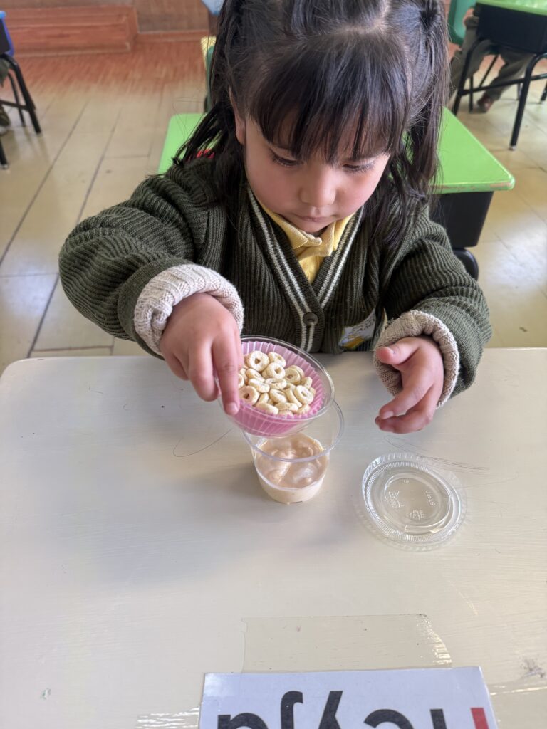 5.- Finalmente, se coloca el cereal sobre la superficie de la mezcla como complemento, cuidando que quede distribuido de manera uniforme.